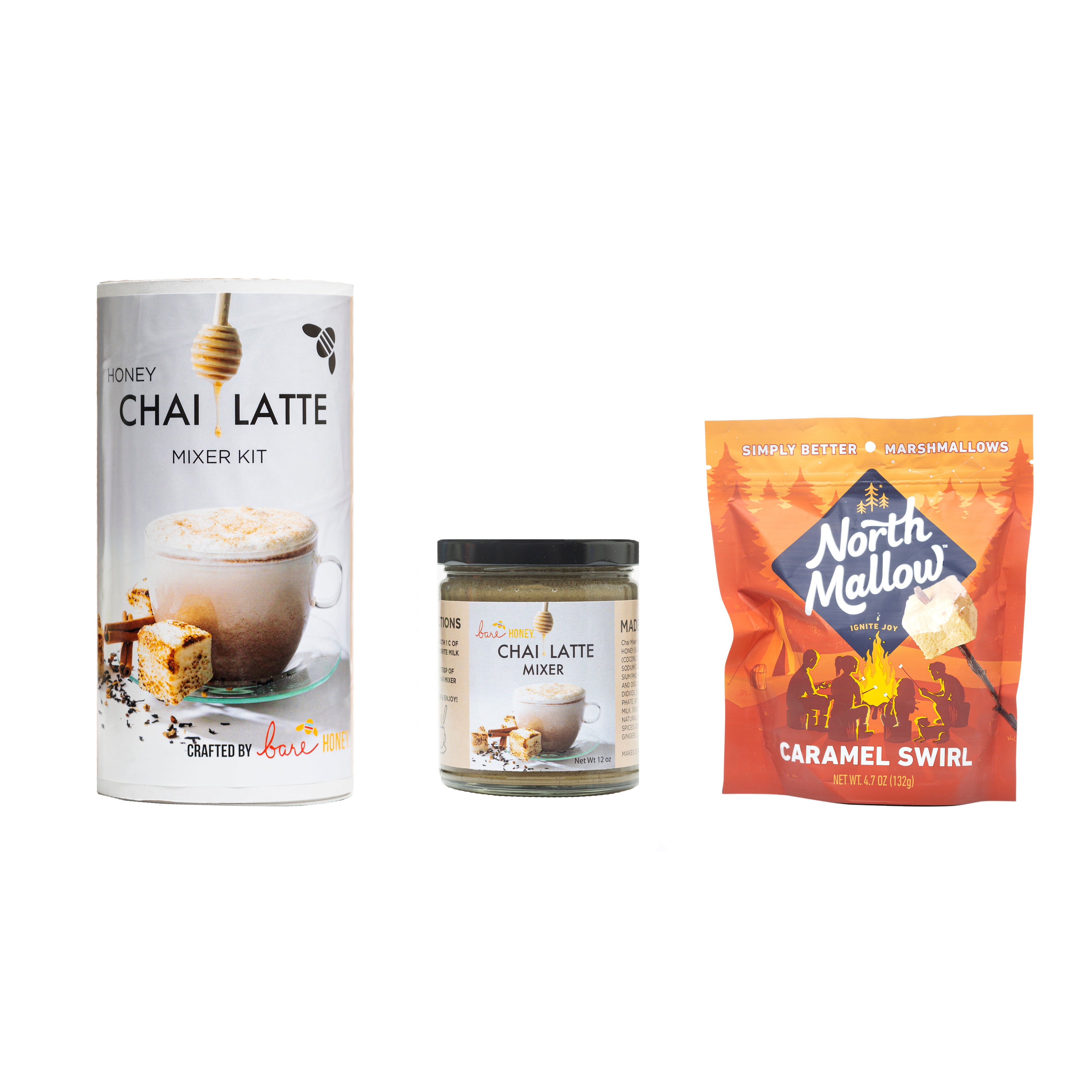 Our three small businesses have combined expertise to bring you an elegant, chai latte kit. The experts at SENCHA have crafted the finest masala chai, balancing the fragrant flavors of black tea, cardamom, peppercorn, cloves & ginger. These are blended with just the right amount of award winning bare sweetness. Mix with your Bare HONEY for a touch of milk, then top with delicious, Small batch marshmallows by North Mallow.